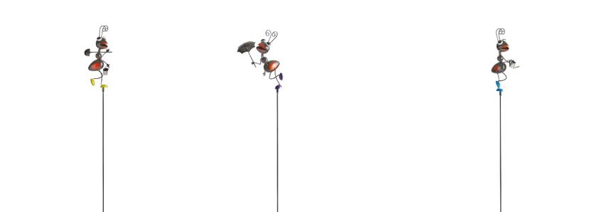Pique décorative à planter dans un parterre ou un pot de fleurs. Mix de 3 designs de fourmi. Métal – 86 x 13 x 6 cm