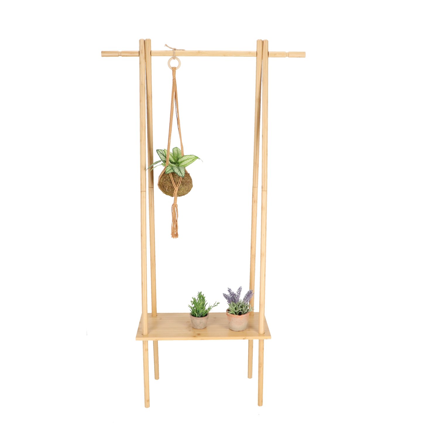 Support à plantes en bambou à trois niveaux pour disposer et présenter vos pots préférés. Chaque plateau est réglable individuellement et relié par un axe central, vous offrant la liberté de jouer avec la disposition. Ce support à plantes est fabriqué en bambou et offre une excellente stabilité.