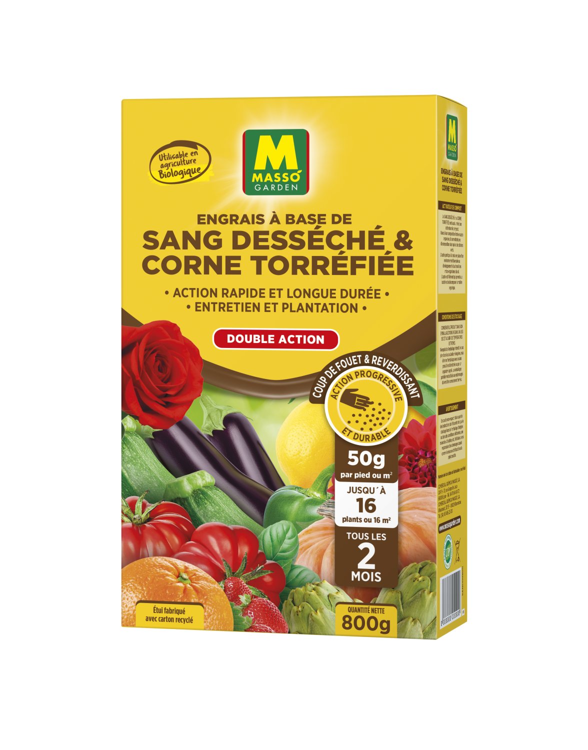 Engrais azoté d’origine naturelle. L’azote favorise la croissance des plantes, agit sur la couleur des feuillages et permet de soutenir la floraison. Le mélange permet de bénéficier des actions complémentaires : progressive et durable de la corne et coup de fouet du sang.